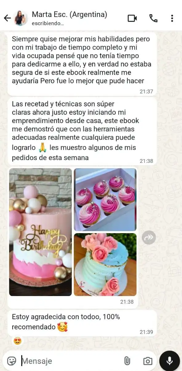 😍Ellas también empezaron desde cero… y esto es lo que lograron con nuestro ebook «El Secreto para Pasteles Perfectos y Emprender desde Casa”